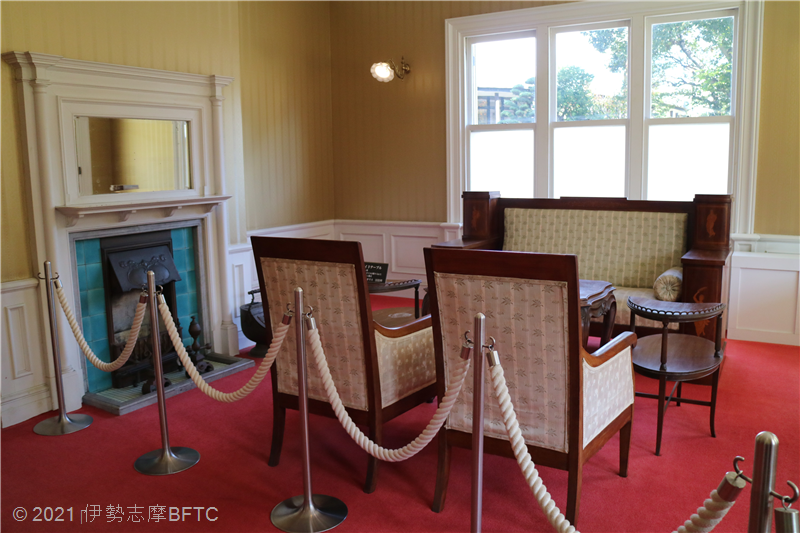 A view of the first floor of the Western-style building. Antique furniture is placed on. |