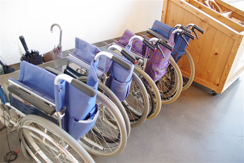 Because of the distance to the building, wheelchairs are placed in the accessible parking lot. |
